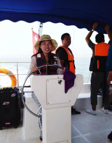 隨后,小伙伴們揚帆出海,吹著柔和的海風,欣賞著海上的旖旎風光,大家縱情享受著陽光和海浪給彼此帶來的愜意。小伙伴們還對開船躍躍欲試,紛紛體驗了一把做舵手的感覺!