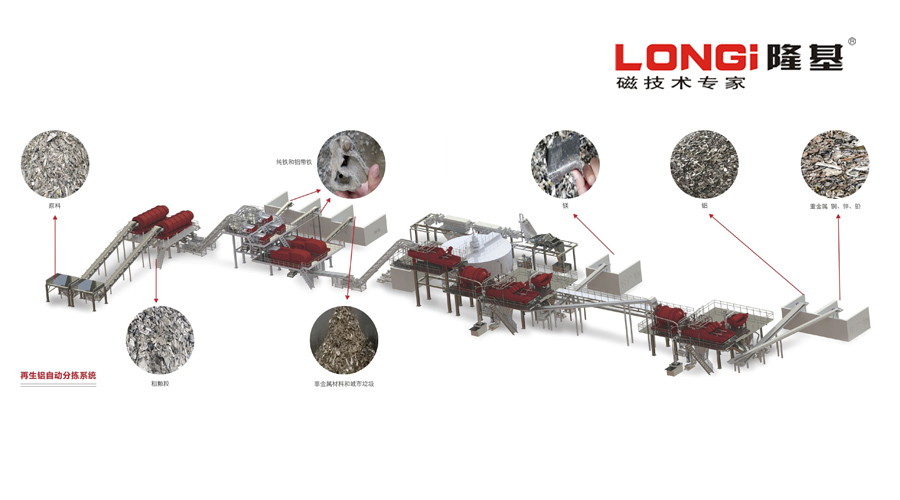 2011年,隆基為滿足市場蓬勃發(fā)展對再生鋁產(chǎn)能的需求,憑借多年在環(huán)保領(lǐng)域深耕的經(jīng)驗,提出顛覆性解決方案,以“全面解決客戶再生鋁分揀問題”思維為指導,成功創(chuàng)建“再生鋁自動分揀系統(tǒng)”。改變傳統(tǒng)提供單一產(chǎn)品,將有色金屬渦電流分選機、強磁選滾筒等自主研發(fā)設(shè)備及相關(guān)產(chǎn)品進行組合,對原料中的非金屬材料、鋁、鐵、銅、鉛、鎂、鋅進行自動分揀,解決客戶全流程問題,讓再生鋁回收更高效,為客戶帶來更高價值,為其利益最大化提供保障。