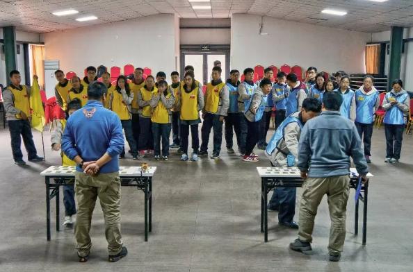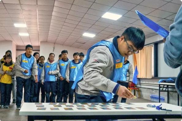 撲克翻牌:這是一場(chǎng)配合上的角逐,既考驗(yàn)著大家的默契和耐心,也考驗(yàn)著隊(duì)長(zhǎng)的協(xié)調(diào)能力與擔(dān)當(dāng)。所有隊(duì)員都發(fā)揮創(chuàng)新意識(shí),共商方案,共渡難關(guān)。一次次失敗重來(lái)、一次次加油打氣,大家為了隊(duì)里的榮譽(yù)而努力,展現(xiàn)出了強(qiáng)烈的責(zé)任感與團(tuán)隊(duì)意識(shí)。