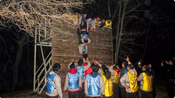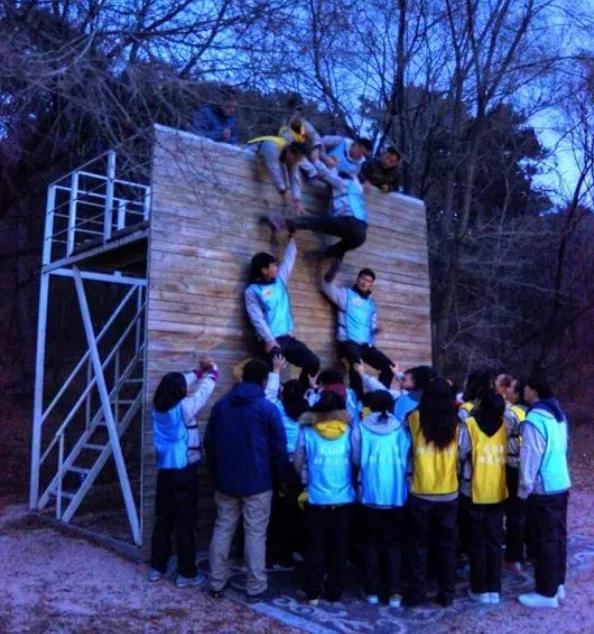 畢業(yè)墻:拓展活動(dòng)的最后環(huán)節(jié),需要全體隊(duì)員合力翻越一面4米高的墻。隊(duì)員唯一能借助的,只有自己的身體和雙手,協(xié)助隊(duì)員翻越高墻。光滑的墻面,沒(méi)有任何輔助,對(duì)毫無(wú)訓(xùn)練經(jīng)驗(yàn)的隊(duì)員而言,困難可想而知。隊(duì)員們用身體搭起“人梯”,讓伙伴們踩著自己的肩膀攀爬翻過(guò),再疼、再累,大家都咬緊牙關(guān)堅(jiān)持,抱著堅(jiān)定的信念,誓讓全體隊(duì)友通關(guān)?此撇豢赡芡瓿傻奶魬(zhàn),在團(tuán)隊(duì)的力量面前卻完成了!爸阅芡瓿蛇@么高難度的挑戰(zhàn),是因?yàn)樵谶@一刻我們都有強(qiáng)烈的團(tuán)隊(duì)觀念,對(duì)團(tuán)隊(duì)的力量有認(rèn)同感。把這種理念帶到工作中,相信我們的工作沒(méi)有戰(zhàn)勝不了的困難。"
