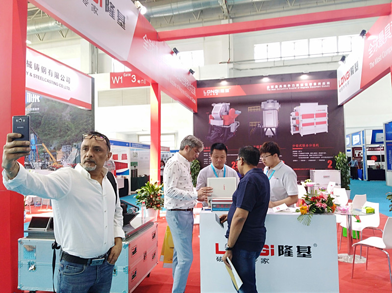 本屆展會期間,隆基現(xiàn)場展出了多款性能卓越的礦用磁選設備,憑借設計與制造的完美結合、技術和品質(zhì)的創(chuàng)新融匯,成為本屆展會上的亮點。中國工程院孫傳堯院士也來到隆基展位前,聆聽工作人員對隆基明星產(chǎn)品”立環(huán)強磁選機”的講解介紹,并對產(chǎn)品的創(chuàng)新設計與優(yōu)異性能給予贊賞。