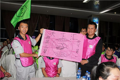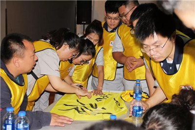 活動(dòng)伊始,在拓展教練的指導(dǎo)下,參訓(xùn)員工分成六個(gè)隊(duì)伍,通過(guò)選隊(duì)長(zhǎng)、取隊(duì)名、繪隊(duì)標(biāo)、定隊(duì)歌等,快速地融入了各自的團(tuán)隊(duì)。
