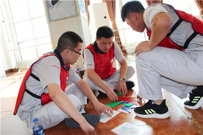 本次訓(xùn)練內(nèi)容包括打破慣有思維的“七雄爭(zhēng)霸”、考驗(yàn)協(xié)同配合的“多人多足”、“虎口脫險(xiǎn)”、“茫茫大海”,講求溝通協(xié)作的“盲人建房”、“七巧板”,挑戰(zhàn)自我的“信任背摔”、“空中斷橋”、“運(yùn)籌帷幄”等項(xiàng)目。