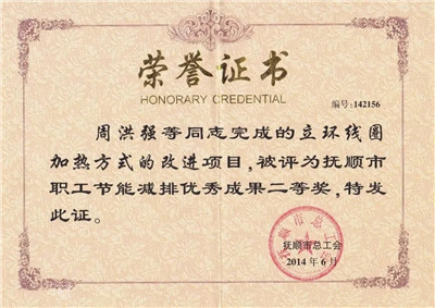 努力沒有白費(fèi),經(jīng)過一年忙碌的設(shè)計(jì)研發(fā)與反復(fù)試驗(yàn),改進(jìn)方案終于獲得成功。隨著工藝的改進(jìn),線圈絕緣度大幅度增加,加熱時(shí)間縮短至原來的一半,線圈的使用周期延長了2年,極大降低了設(shè)備的能耗,節(jié)約了客戶大量維護(hù)成本。該成果于同年申報(bào)并獲得了由撫順市總工會(huì)組織頒發(fā)的“撫順市職工節(jié)能減排優(yōu)秀成果二等獎(jiǎng)”。