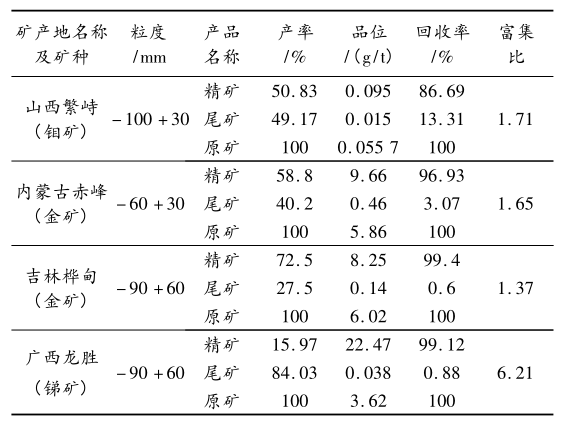 從試驗數(shù)據(jù)中可以看出,國內許多礦山的礦石經(jīng)過 LPPC分選后可以丟棄大量廢石,同時極大的提高了入選礦石的品位,這樣就可以減少選廠的破碎、磨礦及后續(xù)處理的費用。LPPC分選機通過對礦石的預選,提前拋廢,節(jié)能降耗,降低運行成本,大大提高了選廠的經(jīng)濟效益。