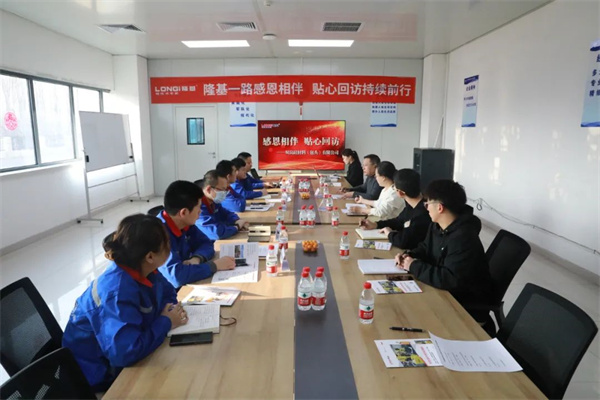 2月15日,活動(dòng)來(lái)到本次回訪的第一站——雙良硅材料(包頭)有限公司,隆基銷(xiāo)售總監(jiān)徐家林、光伏半導(dǎo)體行業(yè)發(fā)展部經(jīng)理趙威及相關(guān)技術(shù)人員組成的回訪團(tuán)隊(duì)上門(mén)拜訪,與客戶(hù)面對(duì)面深入溝通,雙良公司相關(guān)負(fù)責(zé)人出席交流會(huì),雙方針對(duì)項(xiàng)目運(yùn)營(yíng)情況、設(shè)備日常維護(hù)、工藝優(yōu)化及升級(jí)等方面進(jìn)行了交流。